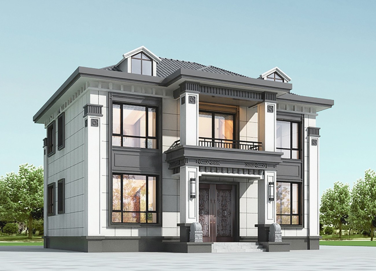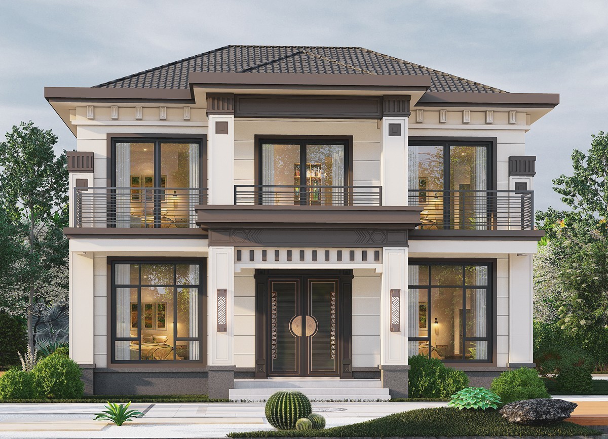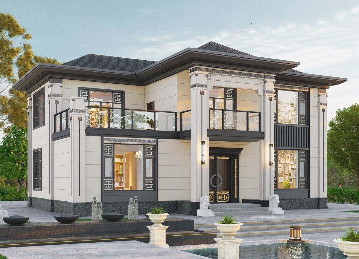 重庆005 两层新中式(11.36x11.76米)-【易设计】