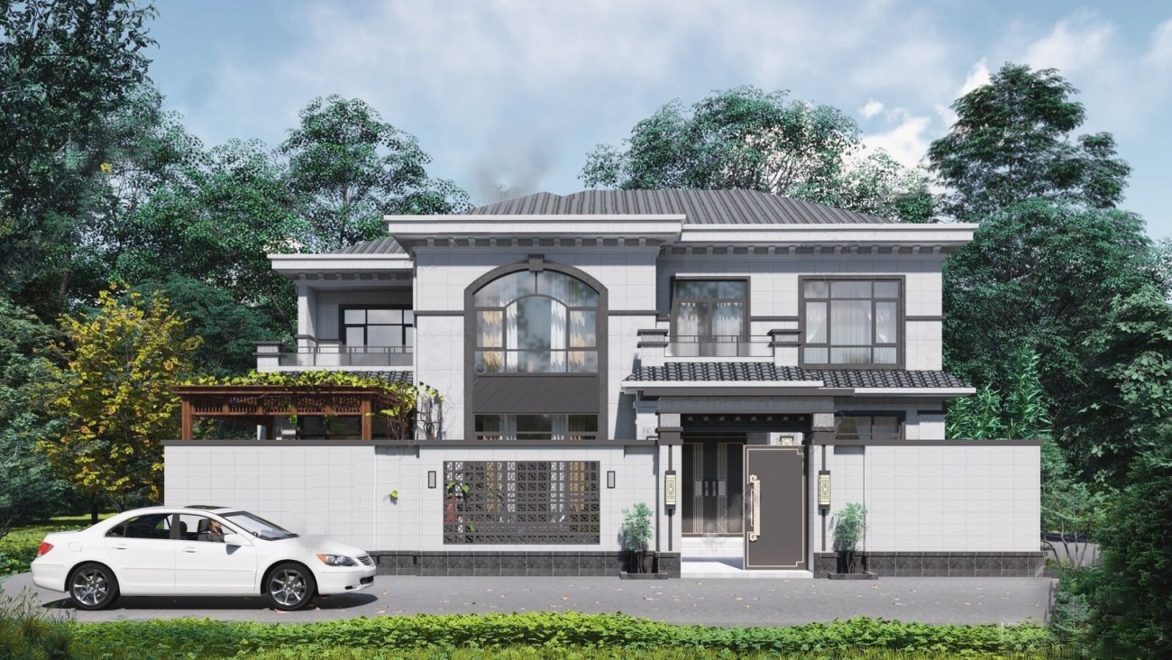 重庆011 两层新中式(15.43x12.66米)-【易设计】